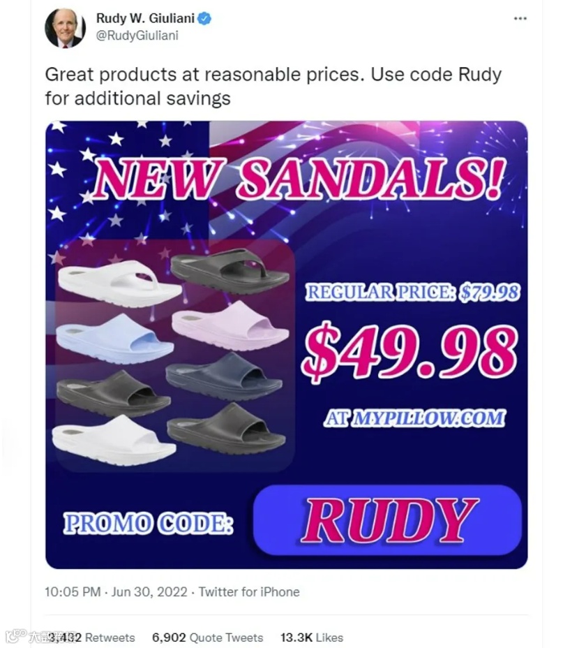 事情发生在6月30日,一条宣传新凉鞋的广告吸引了大家的关注,内容上来看只是普普通通的广告,但发帖人成为这次事件的亮点,此人正是前纽约市长,还担任过特朗普的私人律师。