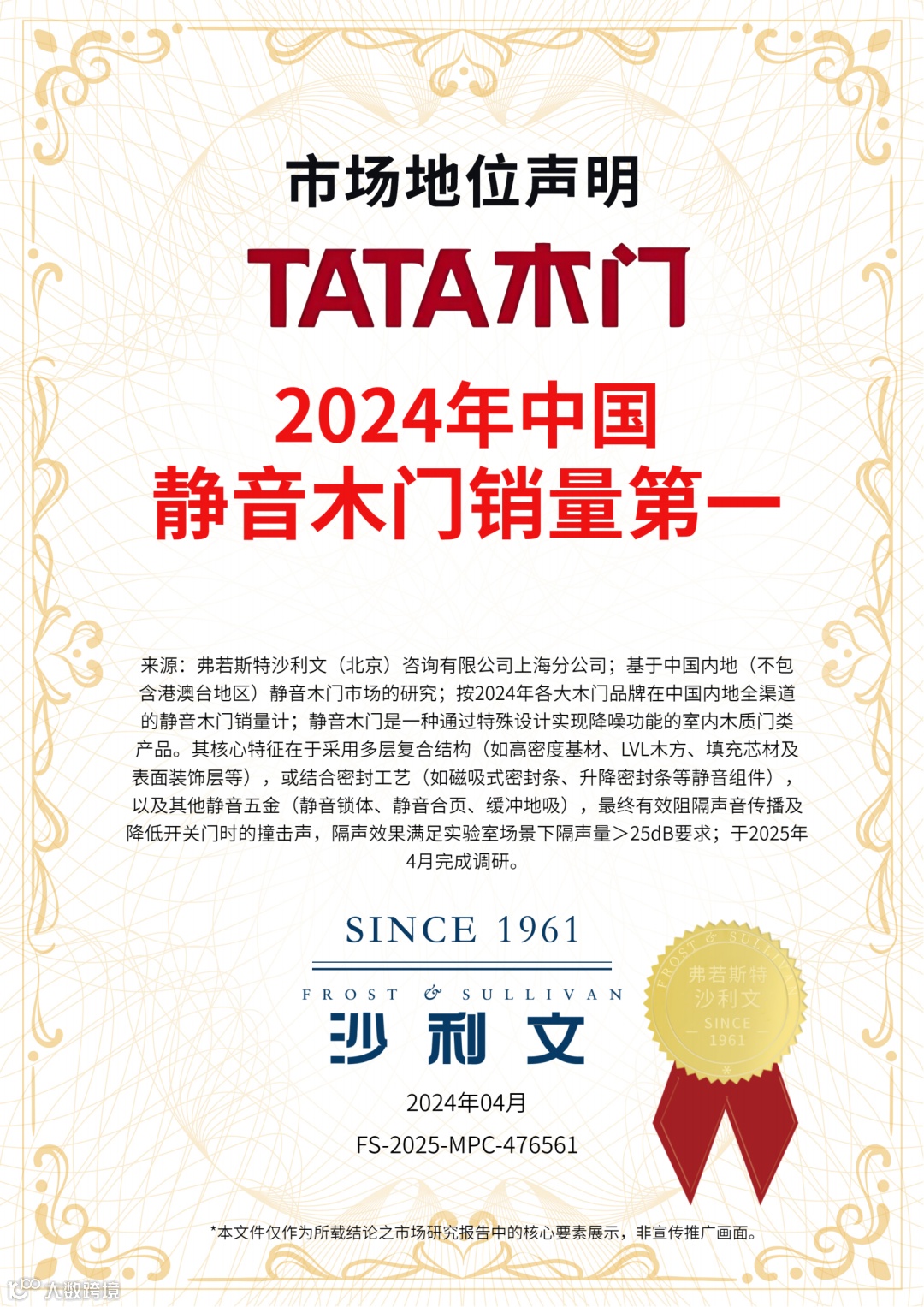 - 安全环保:TATA静音木门达到ENF环保等级,生产过程中实现零醛添加。