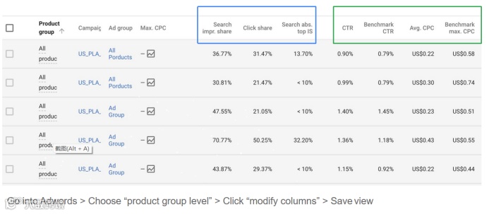 购物竞争状态报告也是另一个可参考出价是否该调整的指标: