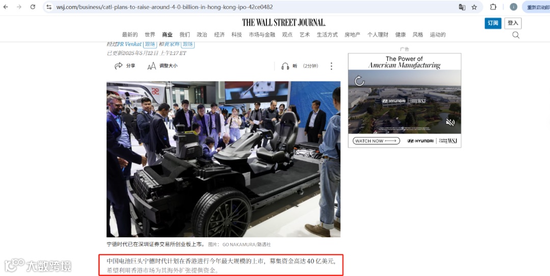 图源:华尔街日报招股书显示,本次募资所得将有90%用于支持宁德时代匈牙利工厂的一期和二期建设,进一步加强在欧洲市场的本地化产能布局,巩固其在全球新能源供应链中的领导地位。