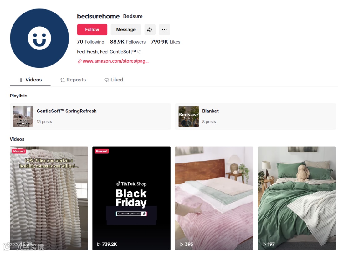 Bedsure在TikTok上通过真实家居场景的创意内容,展现了产品的实用功能与舒适体验。目前账号已获8.8万粉丝和79万点赞,凭借优质内容赢得用户的认可与喜爱。