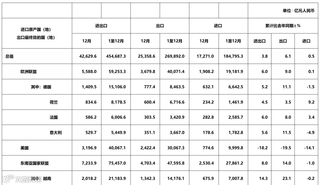 2025年进出口商品主要国别(地区)总值表