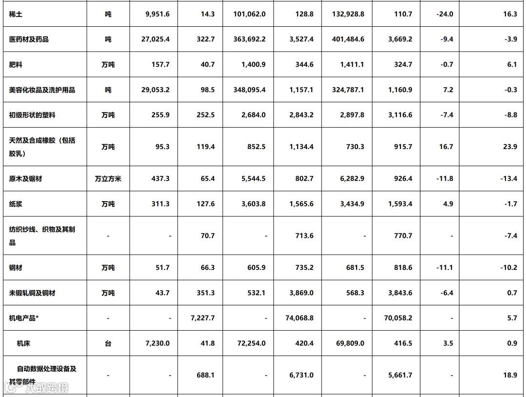 2025年全国出口重点商品量值表