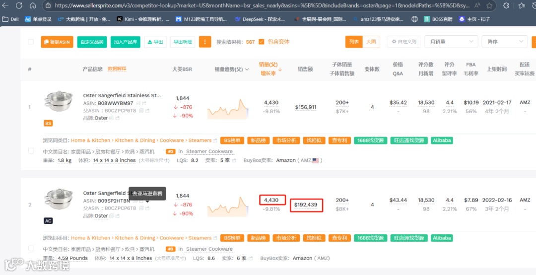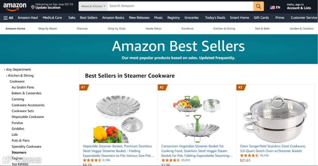 图源:Amazon从卖家精灵数据来看,这款产品仅上个月就在亚马逊卖出4400件,创下超过19万美元的销售额,在蒸笼炊具品类中高居畅销榜第三位。