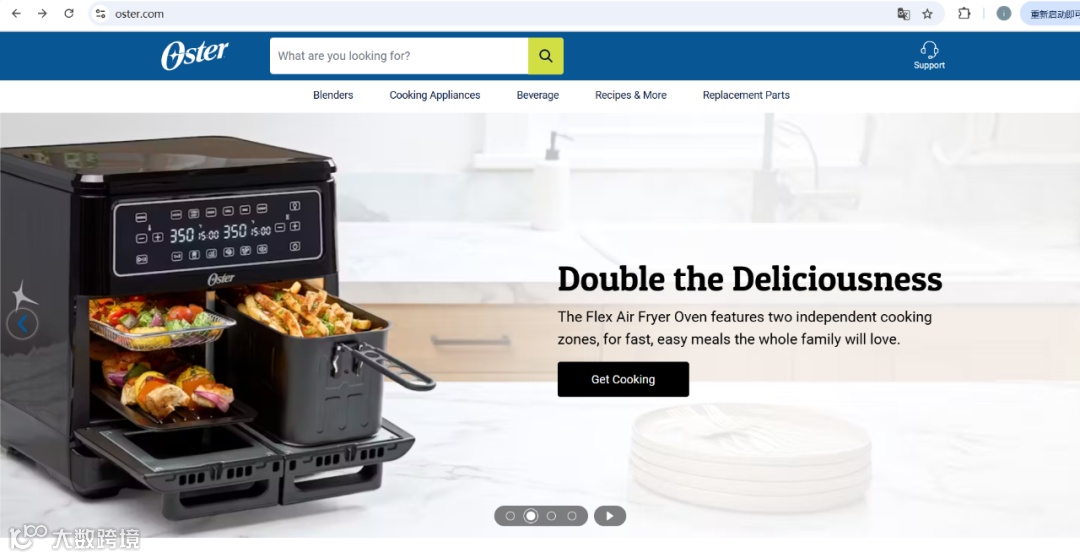 图源:oster更进一步,Oster 在首页专设食谱板块,围绕空气炸锅、搅拌机、榨汁机等产品场景,提供操作视频、节日菜单建议、PDF 下载手册等内容,降低用户学习成本的同时,也在构建品牌的“陪伴感”。