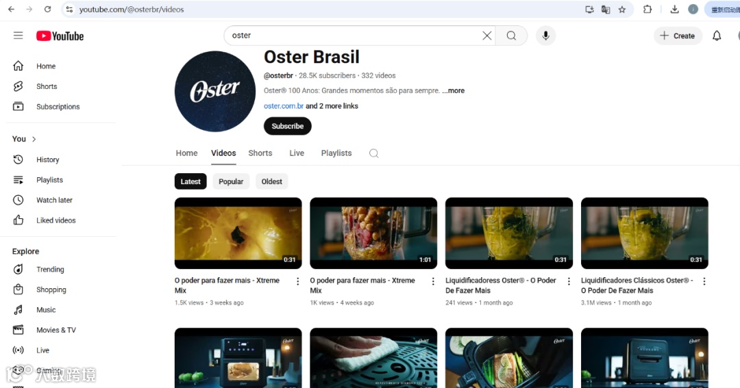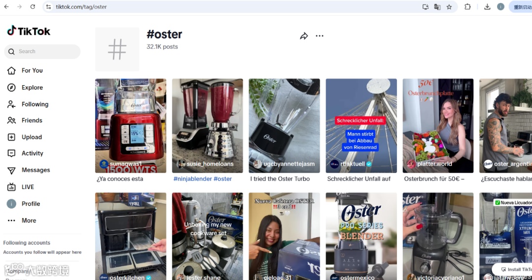 图源:Youtube目前,TikTok上#Oster 相关话题已累计超过3.2万个视频,说明品牌已经具备一定的社交扩散能力。通过真实的厨房环境、简单的操作演示,用户可以快速理解产品使用场景,降低了购买的心理门槛。