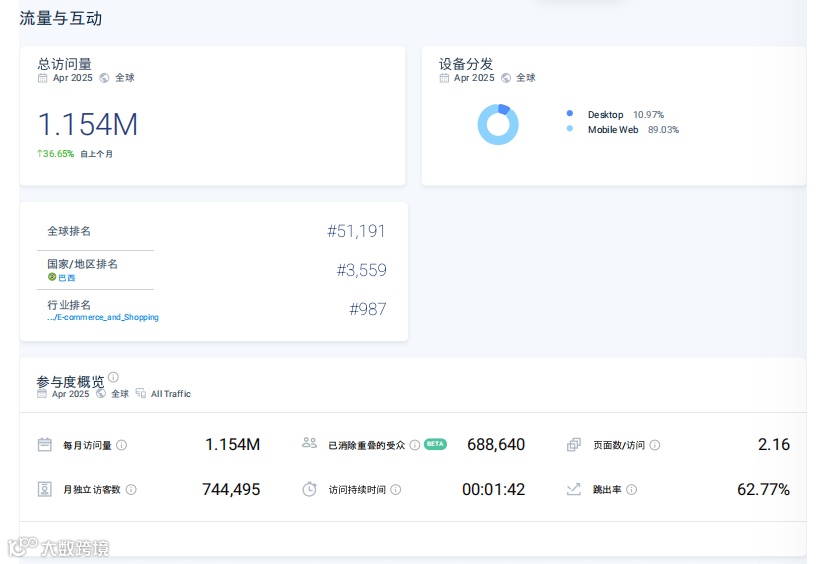 2025 年 4 月,Oster.com.br 月访问量达到 115 万,环比增长 36%,其中独立访客达 74 万,说明品牌吸引力正逐步增强。