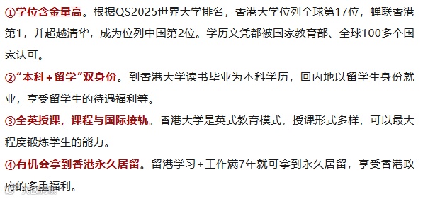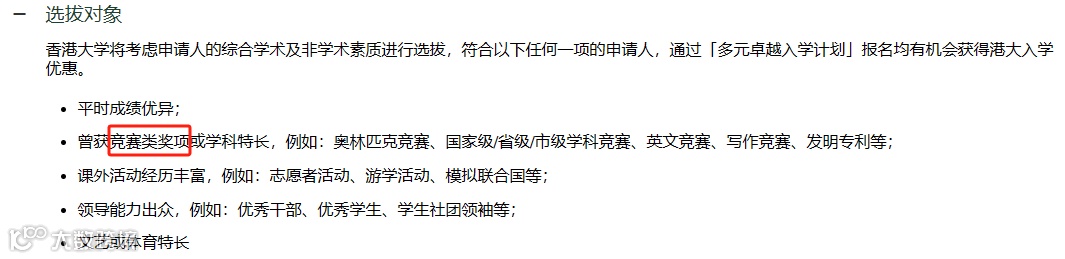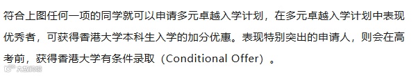 港大设有“多元卓越入学计划”,参与该计划并通过面试评估的学生可在录取时获得优先考虑或加分待遇。建议完成本科申请后积极提交补充材料并报名该计划。