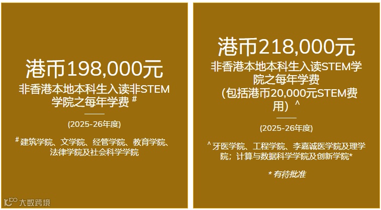 学费按学院划分,分为每年港币198,000元和218,000元两档,约合人民币17.9万元和19.7万元。