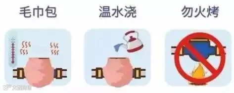 2、水龙头冻结无法开启用水:不能用火烧、火烤水管,正确的方法是用40℃左右的温热水沿裸露在外的水管淋冲两遍,一般即可用水,或等气温升高后,用水也可自动恢复正常,千万不能用热水淋水表。