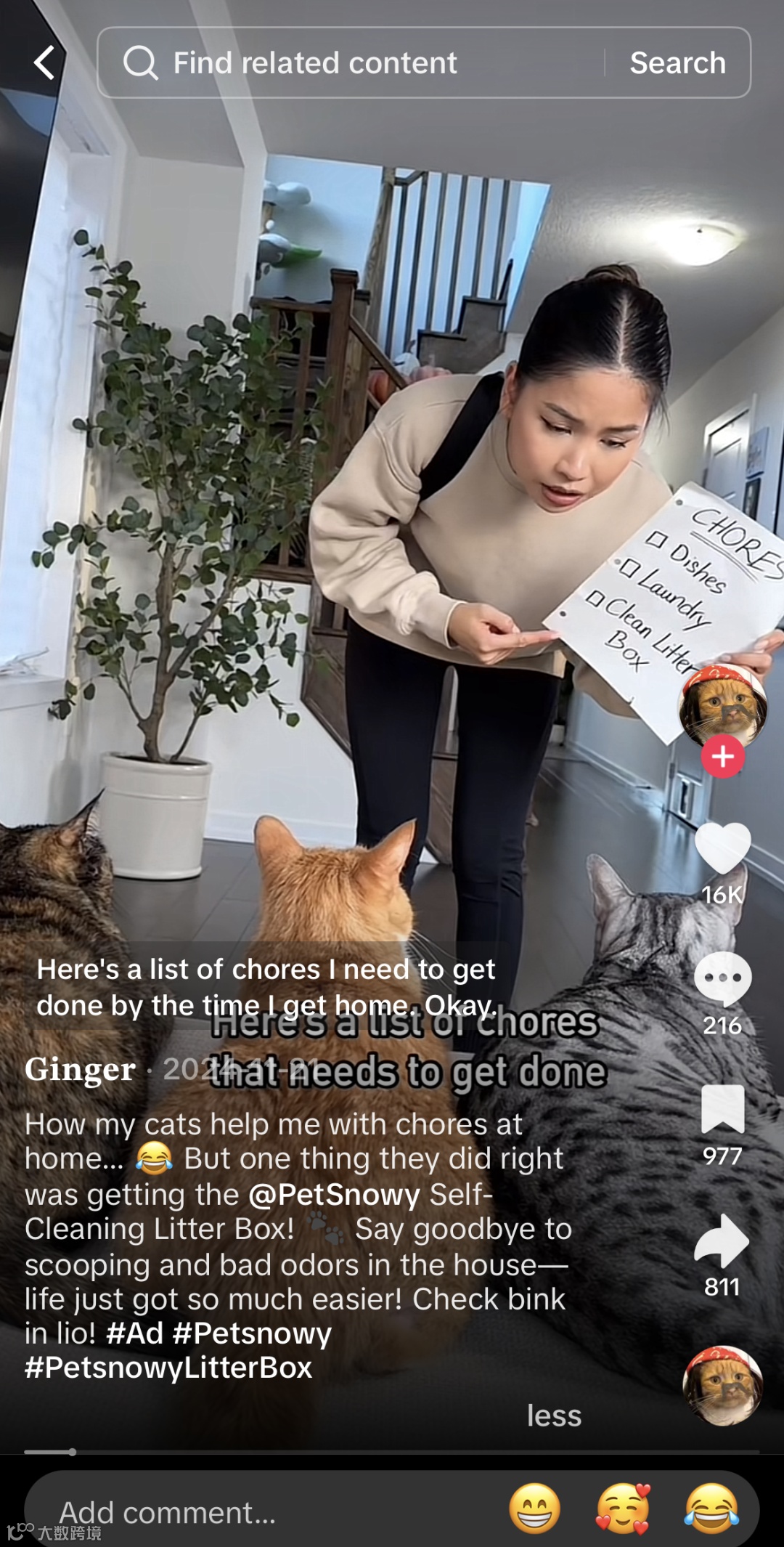 PetSnowy以智能猫砂盆等创新产品成功崛起,其核心竞争力源于对用户痛点的深刻洞察,如对异味控制与猫咪如厕安全的新解决方案。品牌募资近200万美元,刷新了Indiegogo宠物类众筹记录,迅速占领多个平台市场份额。在如今智能宠物品牌百花齐放,且争相出海的背景下,PetSnowy 作为行业新人,要怎样才能被用户记住?PetSnowy 给出的答案是“海外红人营销”而 TikTok 账号 Ginger and Pepper 的合作,则成为其精准触达目标客群、快速建立品牌认知的关键落子。
