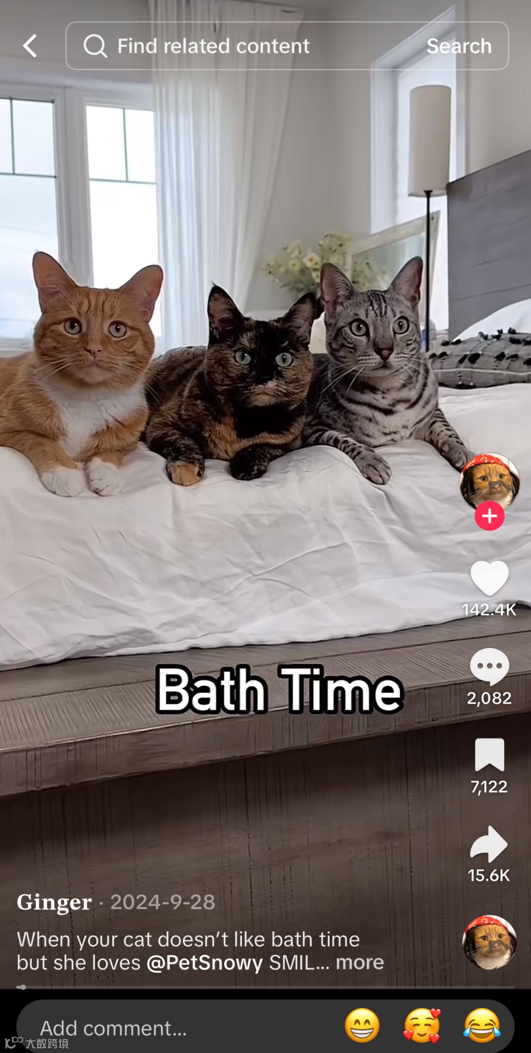 Ginger and Pepper 的社媒矩阵聚焦宠物猫的日常,从趣味玩耍到护理瞬间,每一条内容都以轻松幽默的风格呈现。背景音乐与生动互动的加持,让猫咪洗澡、使用宠物用品等生活场景充满治愈感,精准吸引宠物主人与爱好者关注。这类以真实养宠生活为核心的内容,不仅满足观众对萌宠日常的情感需求,也为品牌合作搭建了天然的植入场景。