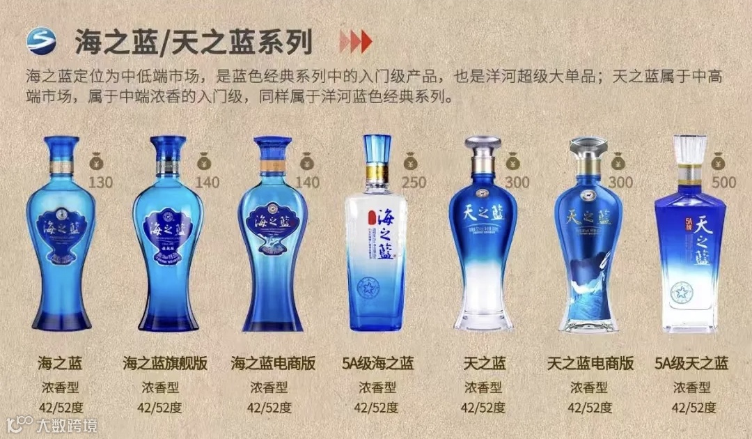 海之蓝系列性价比高,口感绵柔,酒精度多样,适合日常饮用和亲友小聚。该品作为超级百亿单品,已开始在部分地区停供,为新品第七代海之蓝铺路。