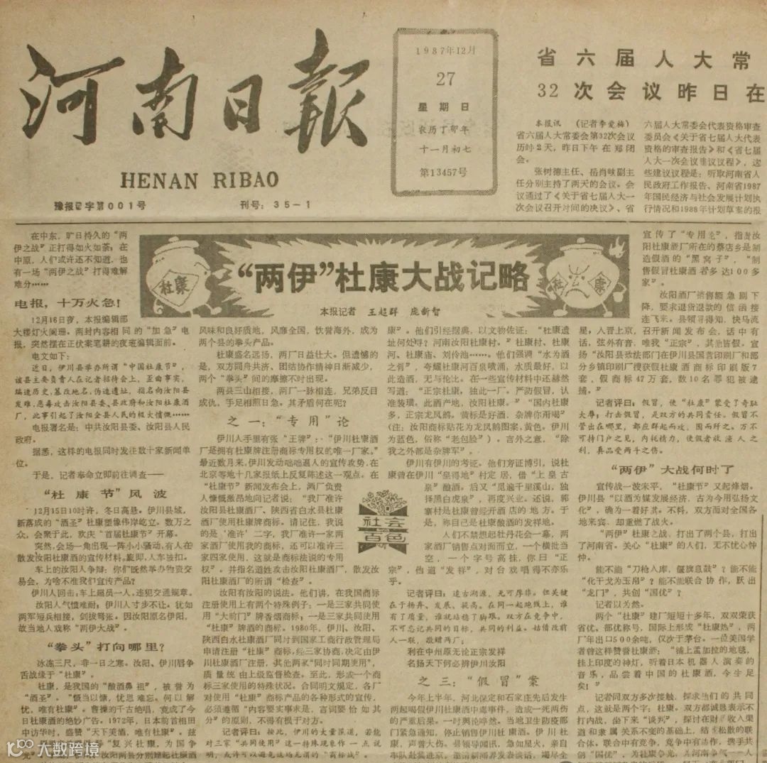 “杜康”之争上世纪70年代,伊川杜康、汝阳杜康、白水杜康成立,纷纷生产杜康酒。1981年,三家酒厂同时提出商标注册申请。在相关部门协调下,伊川杜康注册“杜康”商标,伊川杜康、汝阳杜康和白水杜康共同使用。进入上世纪80年代,汝阳杜康、伊川杜康和白水杜康三家酒企的产品各自畅销,销售额总计约4000万元,令一些知名品牌望尘莫及。