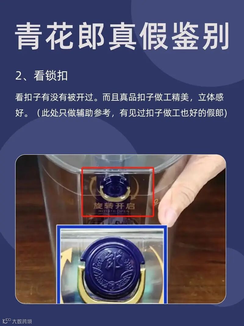 4. 包装完整性:查看包装的两侧齿,如果有断裂,说明扣子可能被动过。另外,酒瓶表面如果有指纹,说明酒可能被拿出来过。
