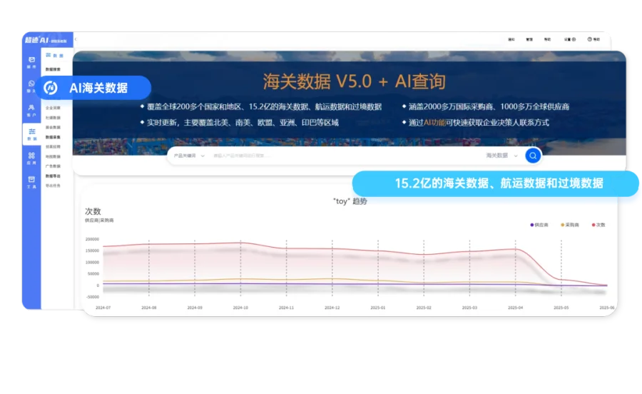 (超迹AI【AI海关数据】功能页面)