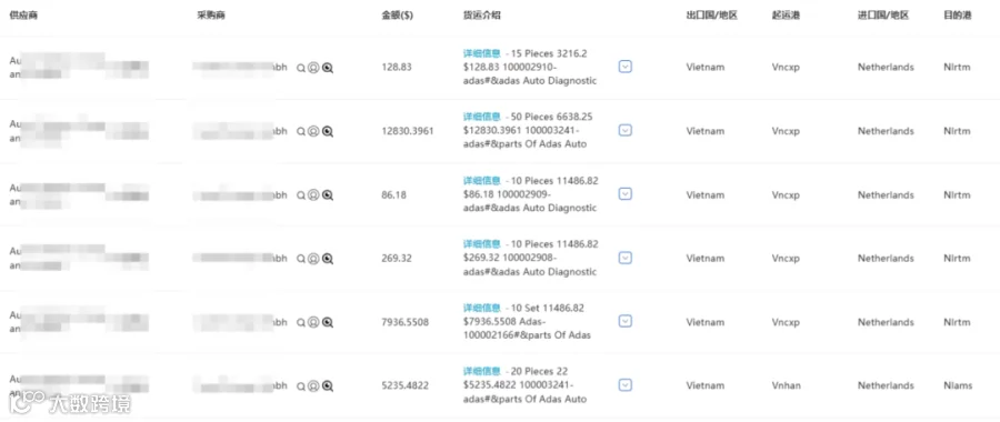 宁波一家汽配工厂通过海关数据发现,荷兰某品牌公司长期从越南进口汽车配件,采购量大且单价高,说明其重视品质而非低价。