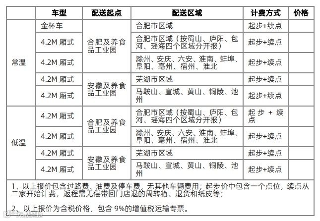 1)东北区域出发,整车配送东北三省内各地级市的承运商,需求车型为6.8米、9.6米货车;