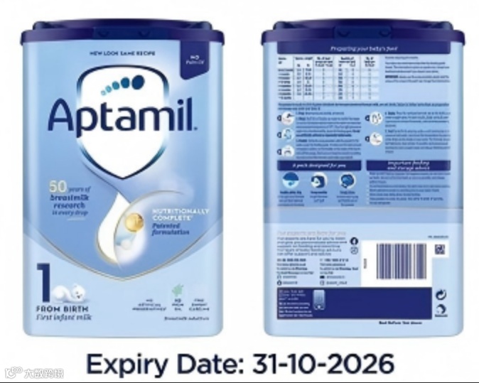 英国市场上,法国达能旗下爱他美一段婴儿奶粉(800g装,批次号31-10-2026)