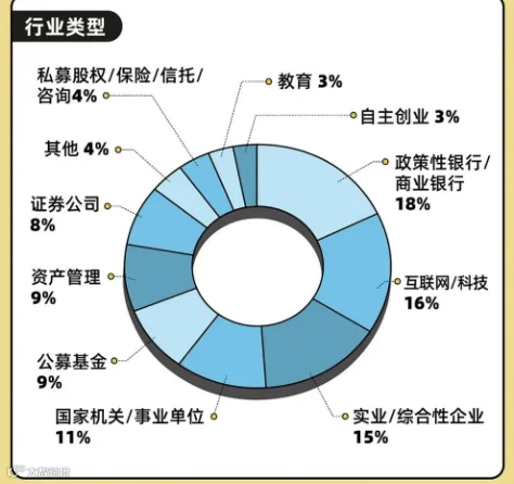 本届毕业生就业去向呈现多元化特征。在已入职的275名毕业生中,约50%选择金融行业,在金融舞台上施展专业所长;16%投身互联网科技行业,拥抱技术变革浪潮;15%进入实体企业,服务国计民生需求;11%进入国家机关与事业单位,参与公共治理和政策实践。