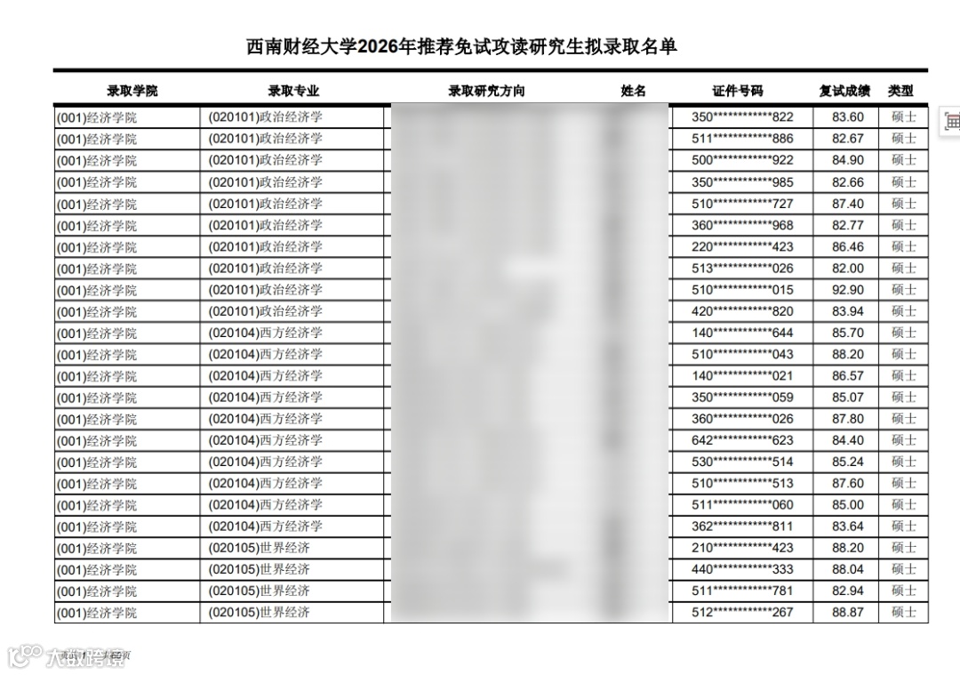扫描下方二维码回复【西财拟录取】,获取2026年西南财经大学拟录取推免研究生完整名单!