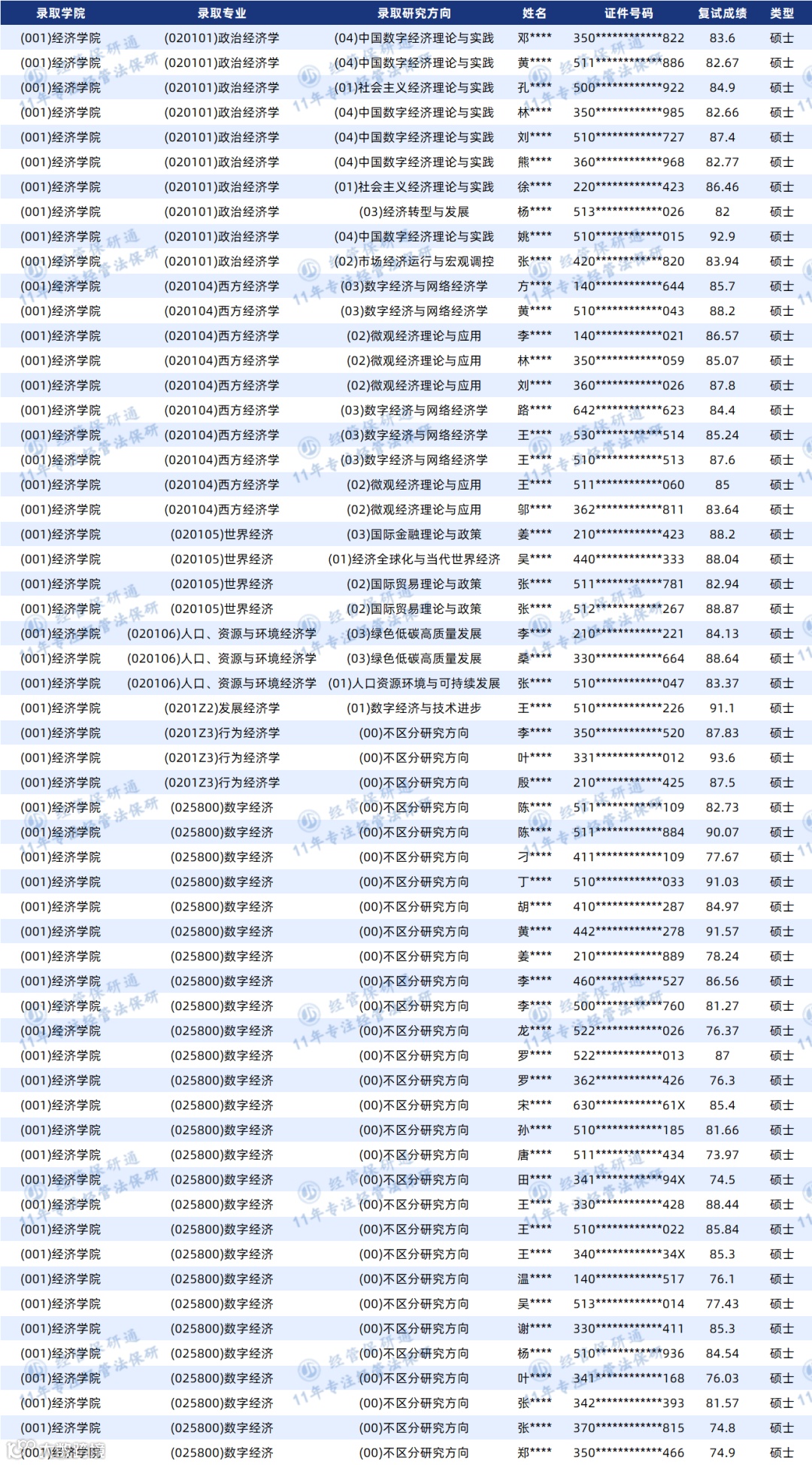 篇幅有限,下边只展示经济学院和财政税务学院名单~扫描下方二维码回复【西财拟录取】,获取完整版~
