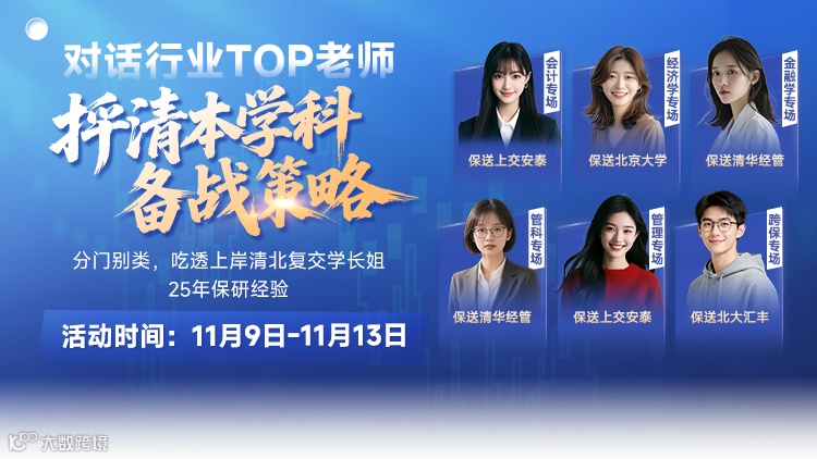 不同学科的保研难度差异大、备战逻辑也大不相同。本次六大学科闭门密训,共分为金融、经济、会计、管科、管理、跨保六大板块。