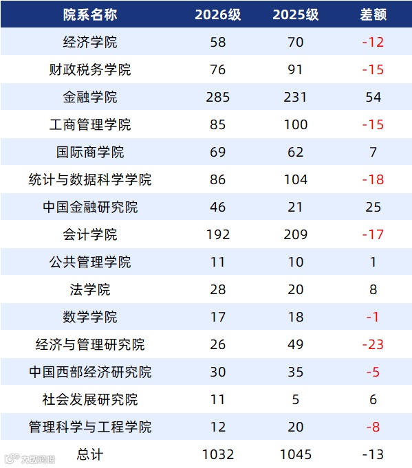 西南财经大学2026级推免拟录取名单公布!26级经管法类推荐免试硕士研究生(含直博生)拟录取共计1032人,小幅缩招!