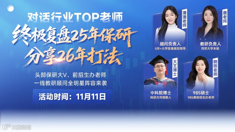 4h超长直播,行业500万+粉丝顶流IP及资深一线老师为你多角度回顾25年保研形势,解读26年保研风向,教你做最适合自己的保研全流程规划。从实战打法出发,解读保研必备要素和关键动作拆解,真实案例揭秘,上岸清北复交的学长姐们都做对了什么?