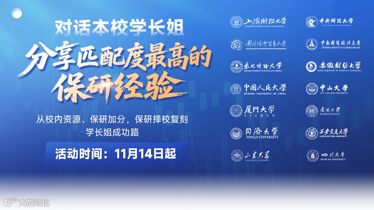 直系学长学姐的保研经验无疑是最容易复刻也是最精准的!本次商科百院本校巡演,拿到清北复交人浙南等名校offer的本校学长姐们会详细介绍