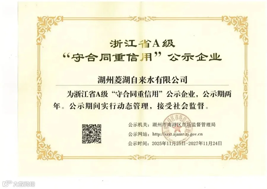 近日,2025年浙江省A级“守合同重信用”企业名单揭晓,水务集团下属菱湖公司凭借规范经营、扎实诚信建设与严谨履约能力成功上榜。这份认证,是菱湖公司坚决贯彻水务集团战略部署、紧跟集团发展步伐,以诚信经营践行国企使命的生动写照。