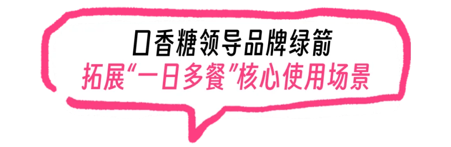 尽管面临跨品类竞争,口香糖在“餐后清新”这一核心场景中的地位依然稳固。随着外卖平台非正餐时段订单量增长60%,年轻群体更倾向于“随时随地”的餐饮消费,口香糖的使用场景也亟需从传统三餐延伸至奶茶、咖啡、甜点等更多美食时刻。