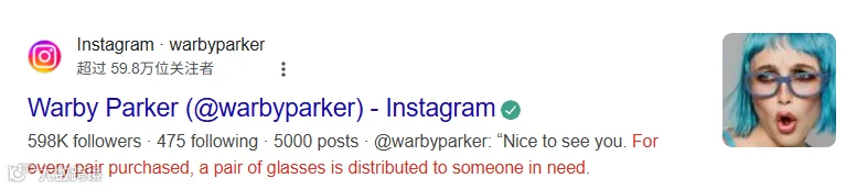 Warby Parker的营销策略以用户参与感和品牌温度为核心,通过多维度触达消费者。在社交媒体矩阵与UGC生态方面,Warby Parker在Instagram、Facebook等平台积累了超百万粉丝,内容涵盖产品展示、穿搭灵感和用户故事,形成了高频互动。
