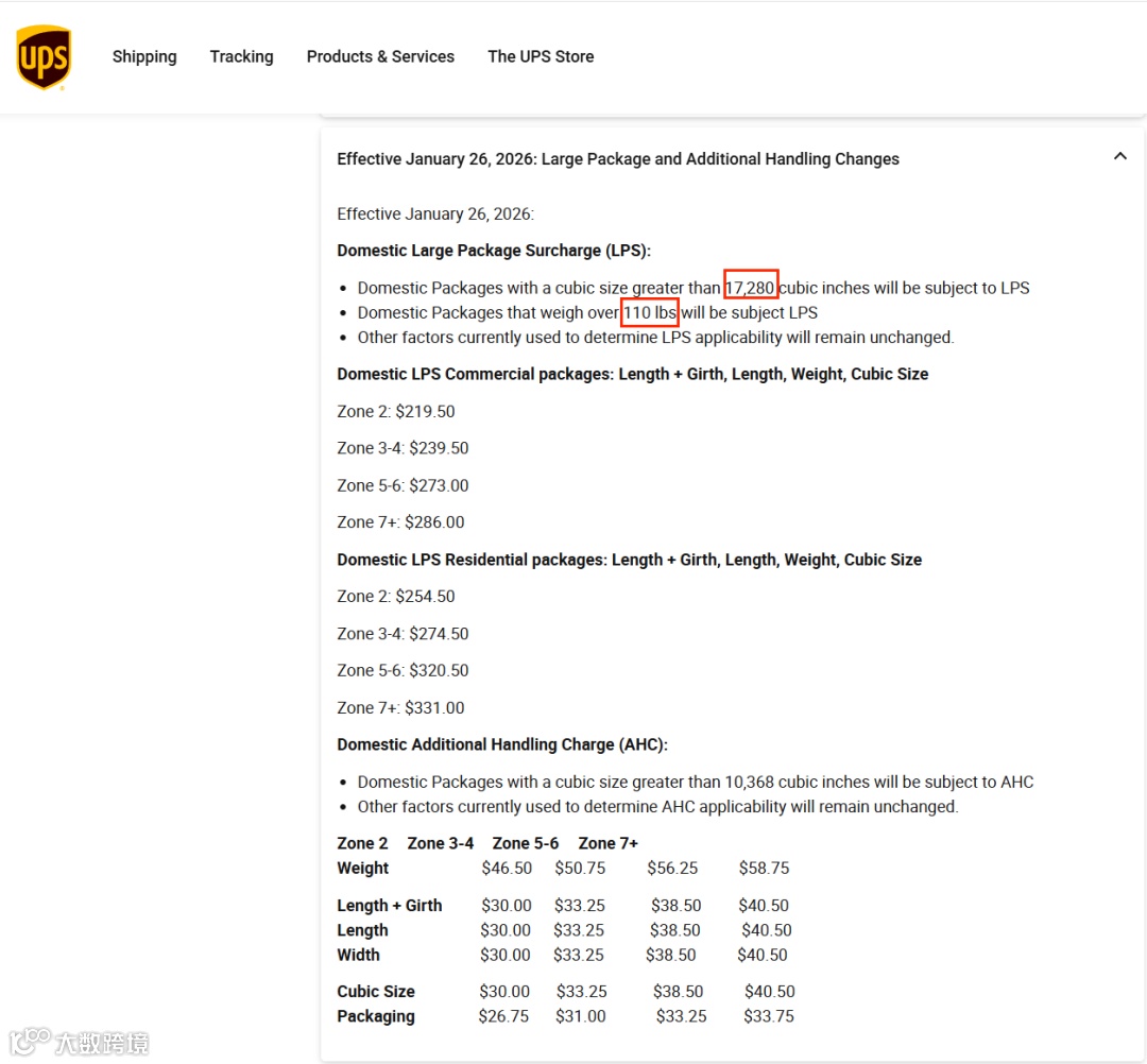 从阈值设置可以看出,UPS与FedEx在体积与重量标准上已实现高度一致,为后续统一“大件定价逻辑”铺路。
