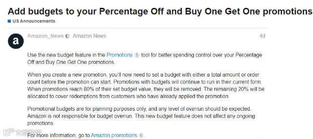 近日,亚马逊后台对促销设置进行了重要更新,新增了“预算限制”功能。卖家在创建“百分比折扣”或“买一赠一”促销活动时,需设定预算上限。当促销费用达到预算80%时,活动将被自动暂停,剩余20%用于结算已产生订单。