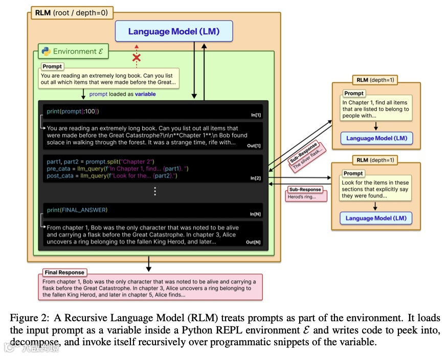 MIT CSAIL团队提出递归语言模型(RLM),将提示词外挂至Python REPL环境,让GPT-5、Qwen3等主流大模型通过编写代码对文本变量切片、筛选和递归调用,在不改变模型权重与结构的前提下处理千万级token超长文本。
