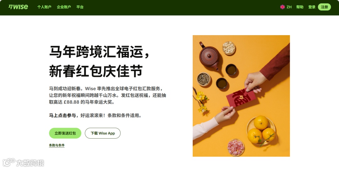 马到成功迎新春。Wise 率先推出全球电子红包汇款服务,让您的新年祝福瞬间跨越千山万水。发送等值 £15 或以上电子红包,即可参与抽奖,赢取高达 £88.88 的马年幸运大奖。