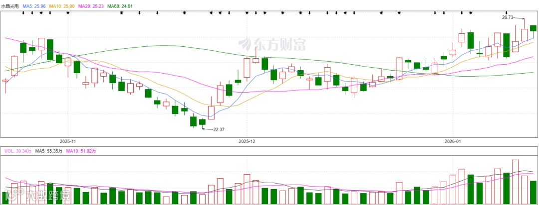 浙江水晶光电科技股份有限公司(证券代码:002273)成立于2002年,是一家专注于光学光电子领域的高新技术企业。公司主营业务涵盖成像光学零组件、汽车电子(AR+)、反光材料等产品的研发、生产与销售,主要产品包括红外截止滤光片及其组立件(IRCF)、光学低通滤波器、吸收反射复合型滤光片、棱镜及微棱镜模块、薄膜光学面板(如摄像头盖板、智能手表表盖、指纹识别盖板)等,广泛应用于智能手机、相机、智能可穿戴设备、智能家居、金融支付、安防监控、车载光电、AR/VR等领域。