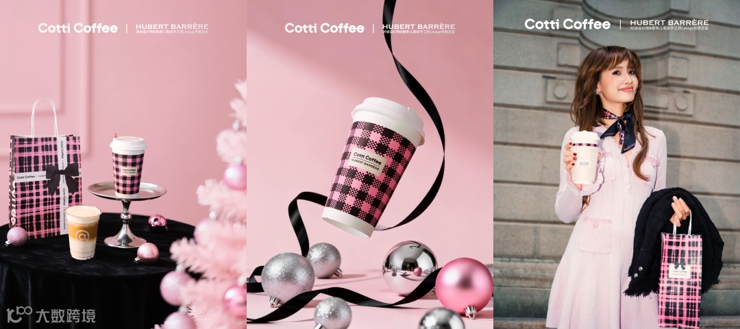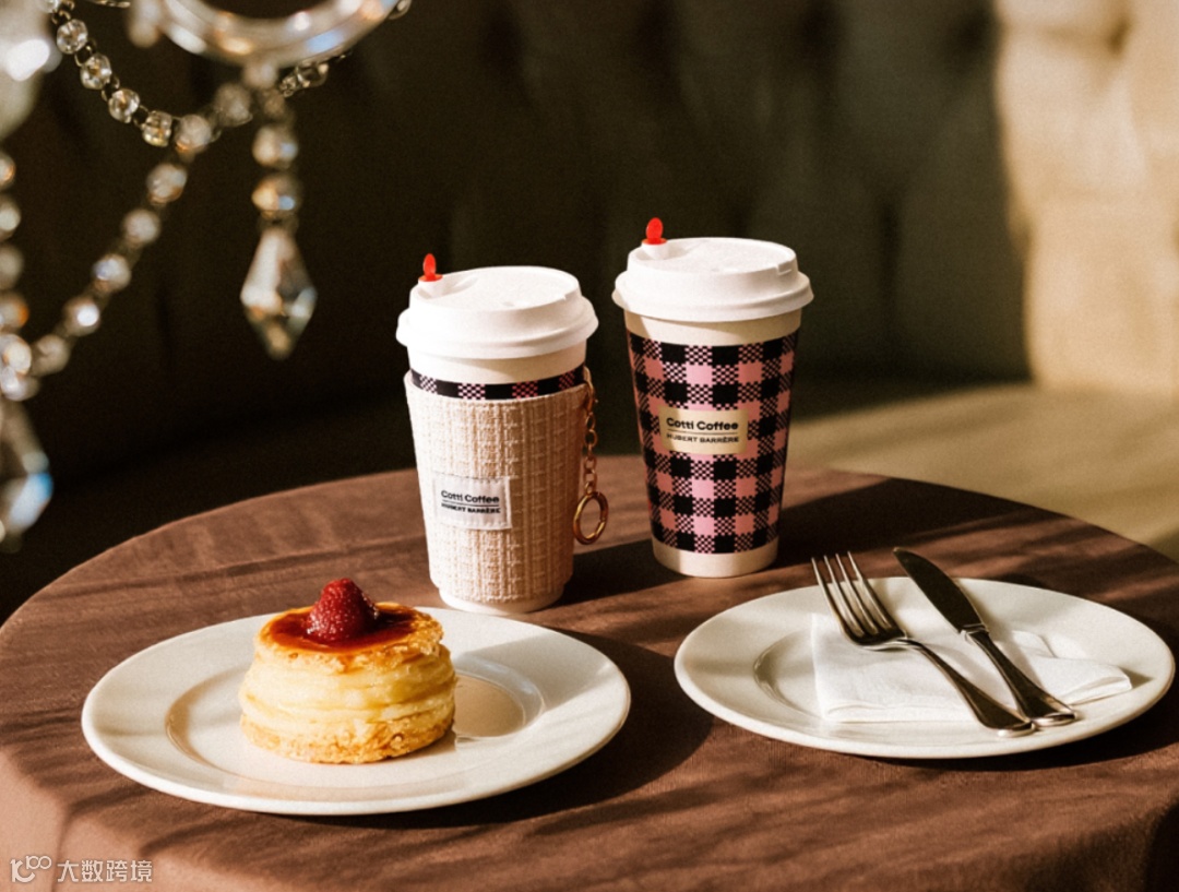 以年底的“粉墨巴黎”联名为例,库迪把合作对象直接对齐到奢侈品美学体系,与香奈儿高级手工坊 Lesage 的创意总监、法国高奢设计师 Hubert Barrère 联名,将粉黑撞色、经典格纹等小香风视觉元素,落到纸袋、纸杯、杯套这些最容易被看见、也最容易被传播的门店物料上。