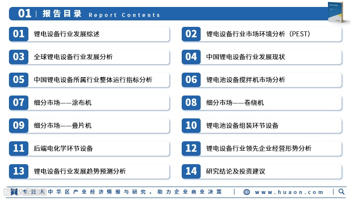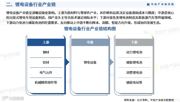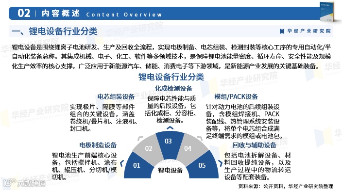 《2026-2032年中国锂电设备行业需求深度监测及投资规划建议报告》由华经产业研究院研究团队编制,基于多年行业跟踪经验,采用桌面研究与定量、定性分析相结合的方法,全面解读行业发展趋势,深度挖掘潜在商机。报告系统分析行业发展环境、市场现状、竞争格局及重点企业经营情况,科学评估投资风险,为企业、科研机构及投资方提供决策支持,助力把握行业方向、规避风险、优化战略布局。