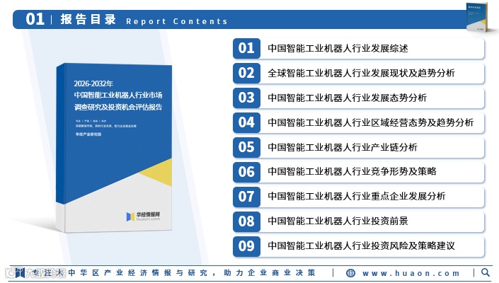 华经产业研究院研究团队采用桌面研究与定量、定性分析相结合的方式,综合运用SCP模型、SWOT、PEST、回归分析、SPACE矩阵等工具,全面剖析智能工业机器人行业的市场容量、产业链结构、经营模式、盈利水平及外部环境因素。基于行业发展轨迹与实践,编制《2026-2032年中国智能工业机器人行业市场调查研究及投资机会评估报告》,为企业、科研机构及投资方提供战略规划与决策参考。