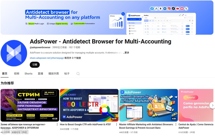 AdsPower 能让每个油管账号都在独立的浏览器环境运行,相当于每个账号都有自己的“专属设备+独立 IP”,帮你轻松注册和管理多个 YouTube账号,实现多账号的独立运营~