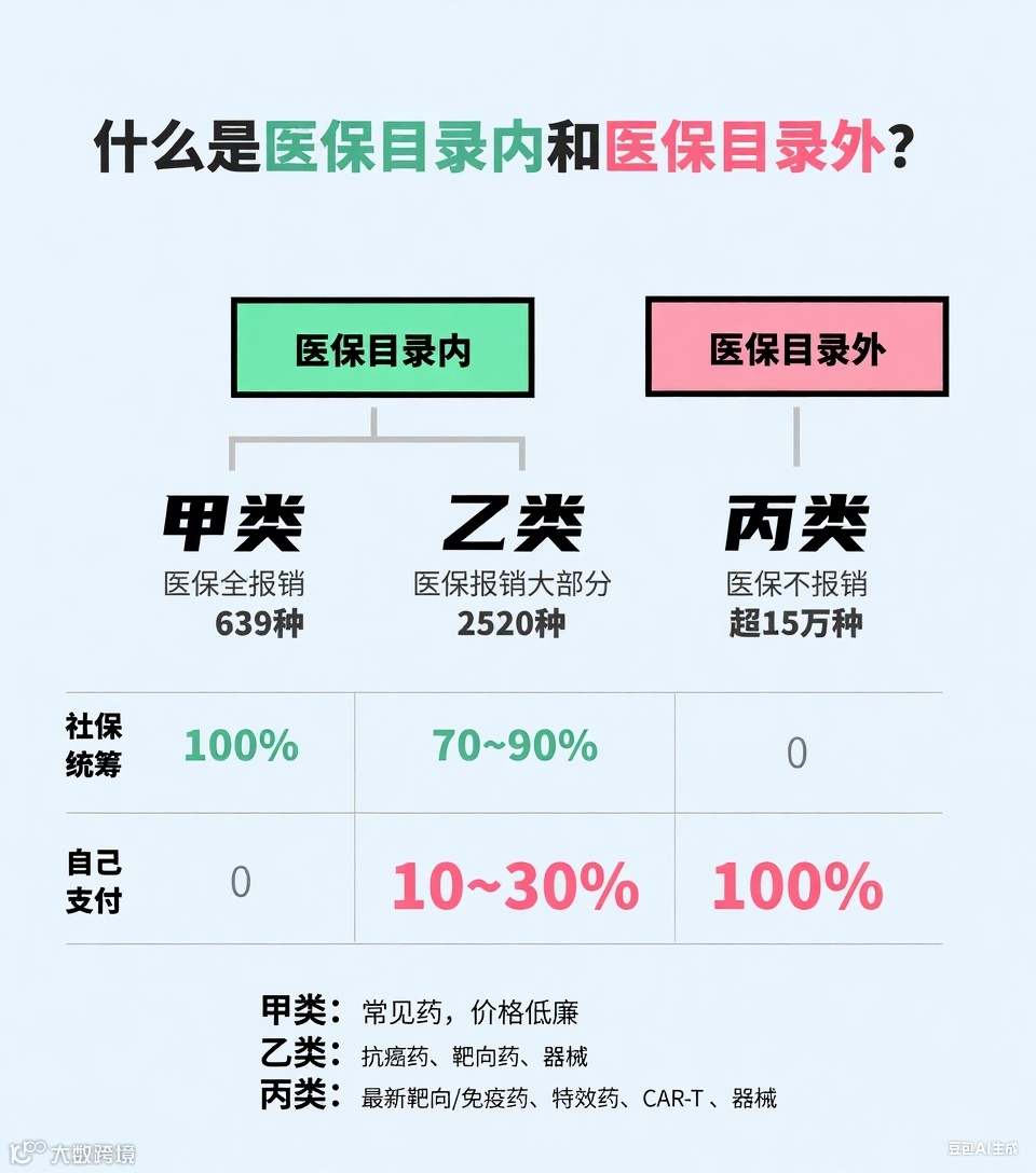 每次去医院拿药,药方上的 “甲类”“乙类”“自费” 标签是不是总让你犯迷糊?同样是治病的药,为啥有的能全报,有的一分不报,还有的报销规则特别复杂?今天就来给大家一次性讲清楚医保药品的分类奥秘~