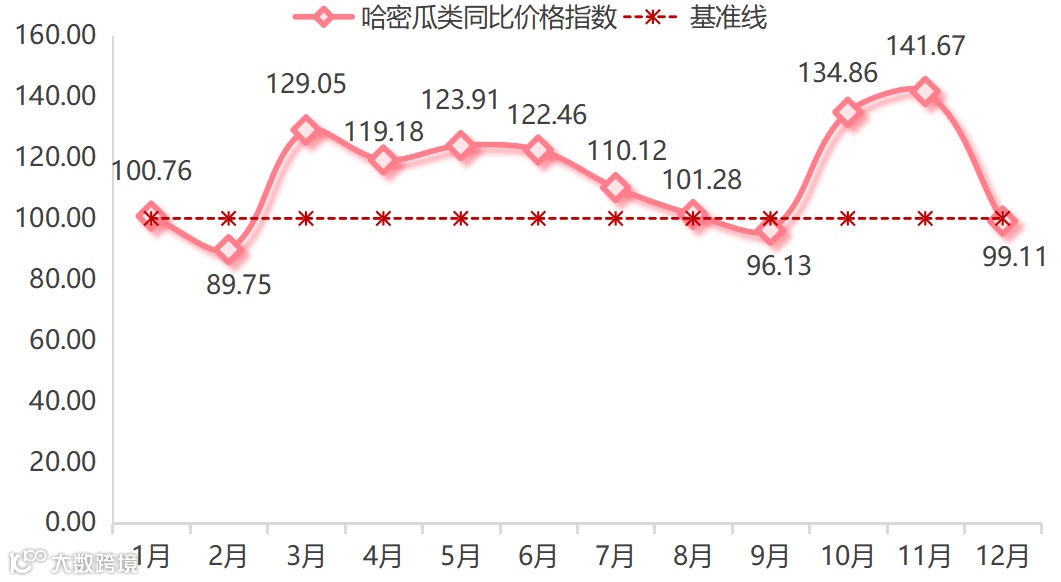 (二)哈密瓜类同比价格指数以涨为主