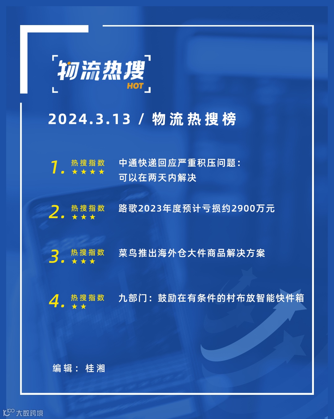 3月13日消息,菜鸟与林氏家居目前已开展全球合作,并成为其最大的跨境物流合作伙伴。根据合作协议,包括头程、海外仓储、尾程在内,菜鸟在美国等核心国际市场为林氏家居提供端到端的海外仓大件商品解决方案。为满足中国大件商品快速增长的出口需求,菜鸟于日前推出了海外仓大件商品解决方案。(来源:运联网)