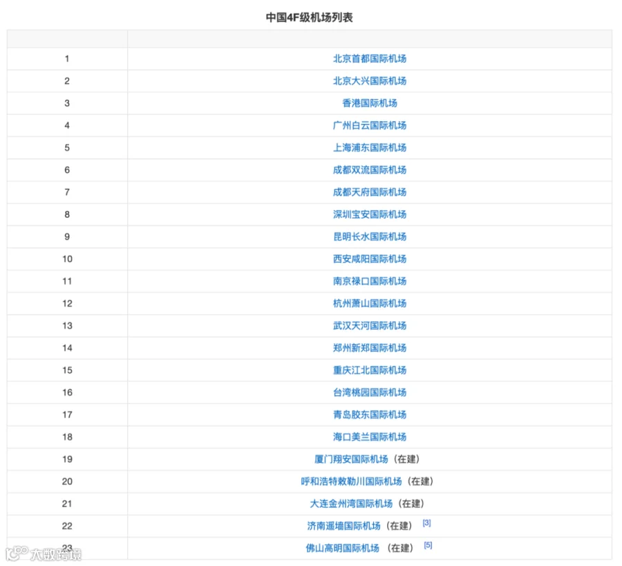 从规模等级看,居第一梯队的4F机场,不到20座。