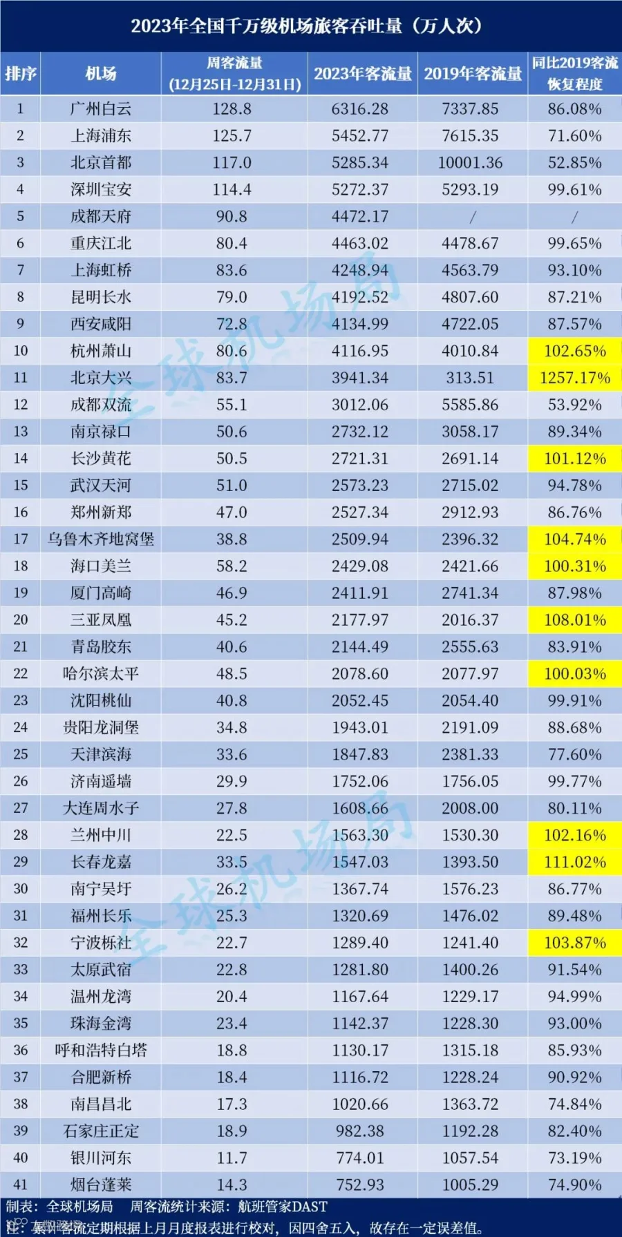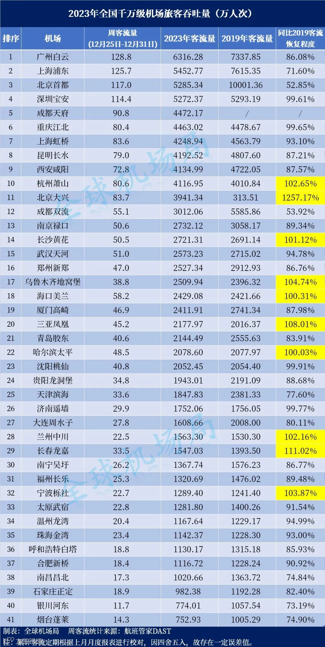 但是,这次点名的顺序,显然并不完全是按照航空流量来的。因为同期乌鲁木齐、哈尔滨的旅客吞吐量都在前十名开外,哈尔滨更是在前二十名之外。而未被点名的杭州,则进入了前十。