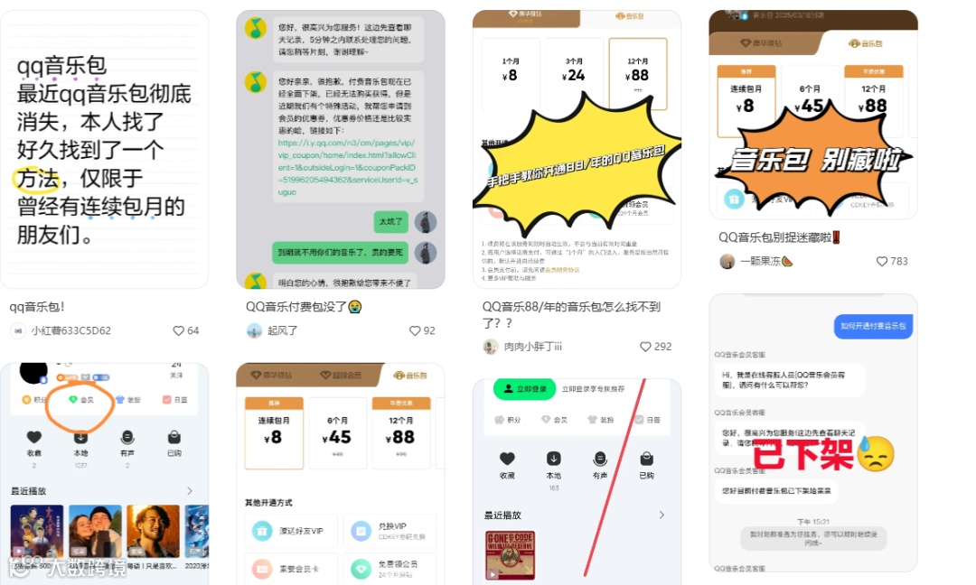 不少用户反映,原本8元/月的基础音乐包已被下架或隐藏,且广告增多、界面复杂,影响使用体验。