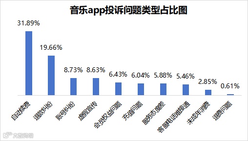 消费服务保障平台“消费保”数据显示,截至2024年11月25日,音乐类App累计投诉4,696件,整体解决率仅为31.62%。其中,自动续费(31.89%)和退款纠纷(19.66%)为主要问题。