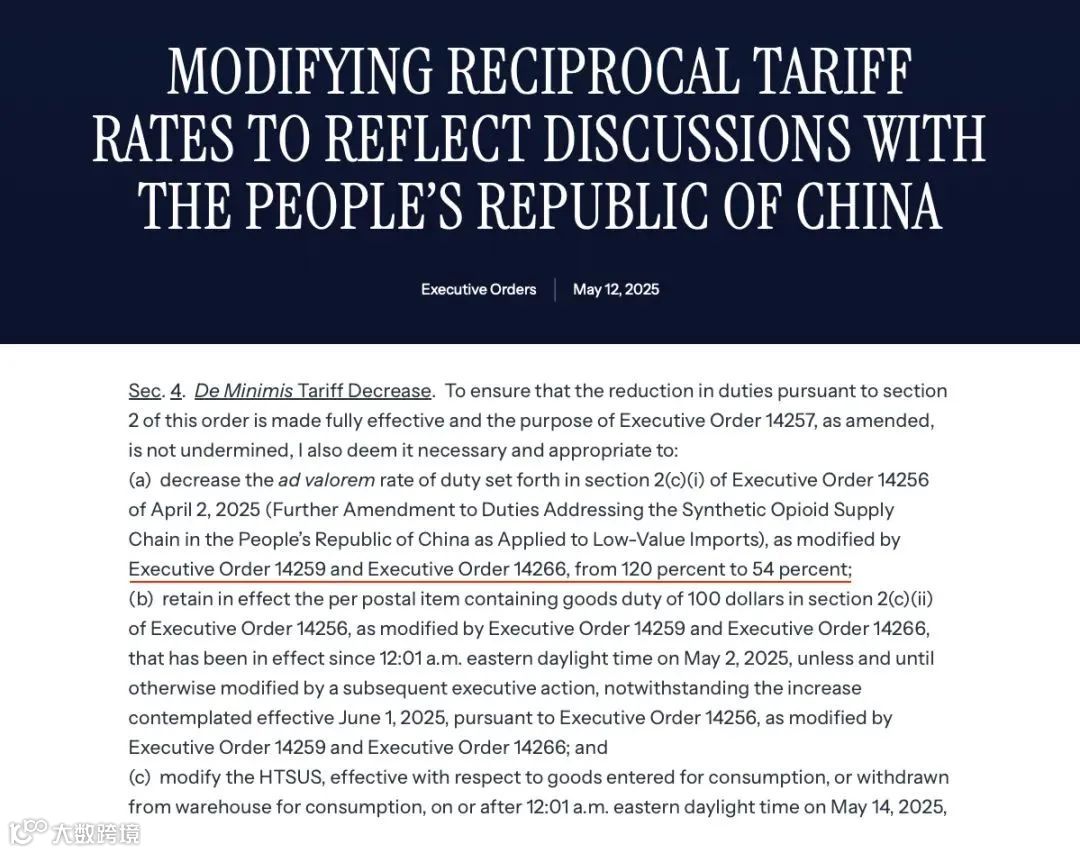 关税税率由120%下调至54%,大幅减少卖家运营成本。例如,一个价值100美元的商品,关税支出从120美元下降至54美元,卖家利润空间显著提升。